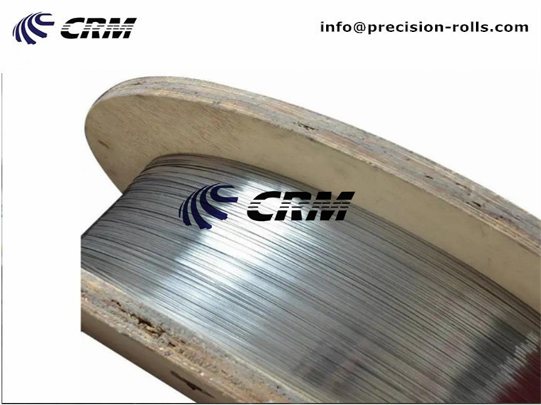 Description of how use our rolling mills, Our CRM brand wire flattening machines, such as the 2 Hi rolling mill, are designed to efficiently perform the wire flattening process. The process begins with feeding round wire into the rolling mill, which features two horizontally positioned rollers. These rollers apply precise pressure as the wire passes between them, gradually reshaping it from its original round form into a flat profile. This method ensures consistent, high-quality results for producing flat wire suitable for various industrial applications.